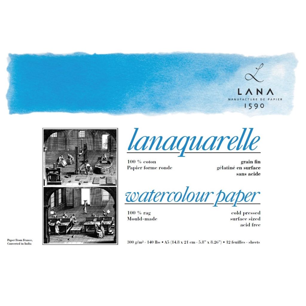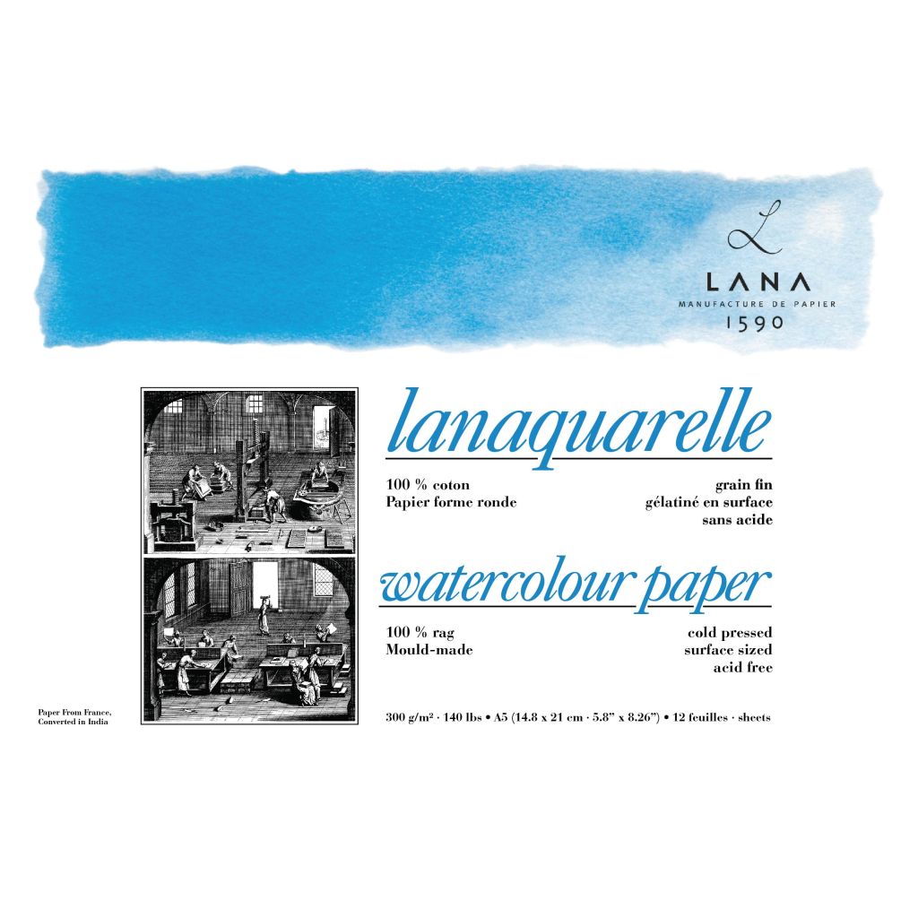 Lanaquarelle is 300 GSM Natural White Mould Made Cold Pressl paper in France. It is...