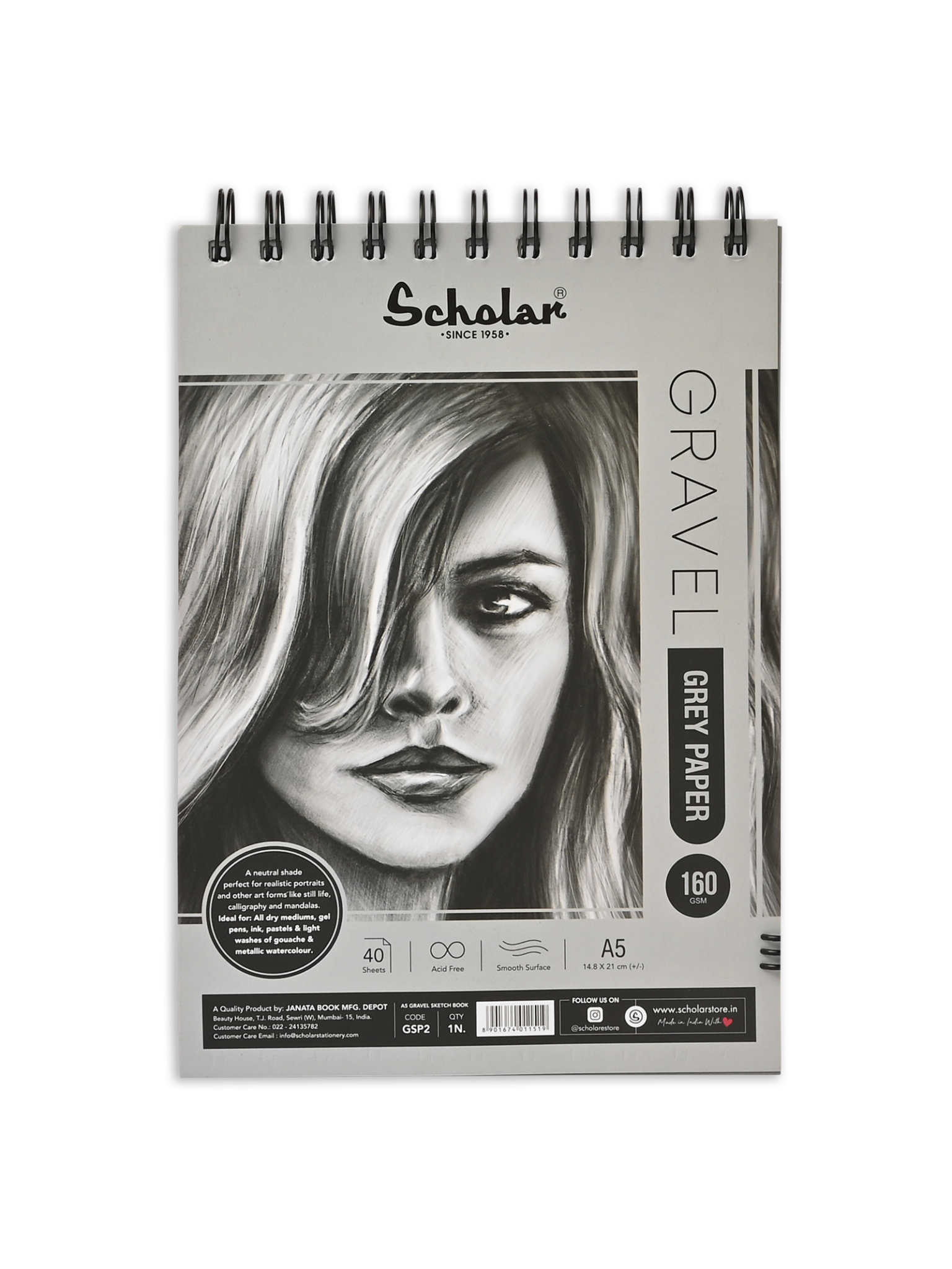 Scholar Gravel Sketch Pad Grey Toned Paper 170 gsm