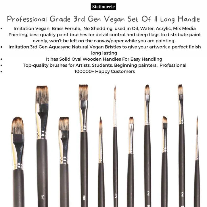 Stationerie Mix Set Of 11 Long Handle (3rd Gen Aquasync Natural Imitation Vegan Bristle)